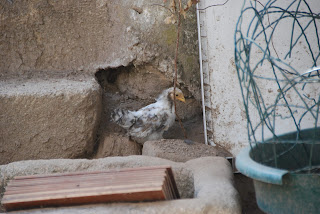 Os garnizinhos passeiam pelas beiras do pátio e passam por tudo o que encontram, sempre a esgravatarem à procura de algo para comerem.