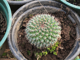Antes do inicio das chuvas fortes e abundantes, passo os vasos de cactos para dentro da estufa. Com paletes fiz uma estrutura onde coloco os vasos. No ano passado fiz isto já tarde e perdi alguns cactos. Devido a quantidade de água da chuva alguns cactos apodreceram. Aqui estão protegidos e lá para Março tiro-os da estufa.