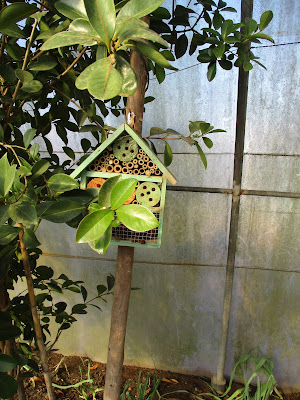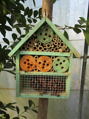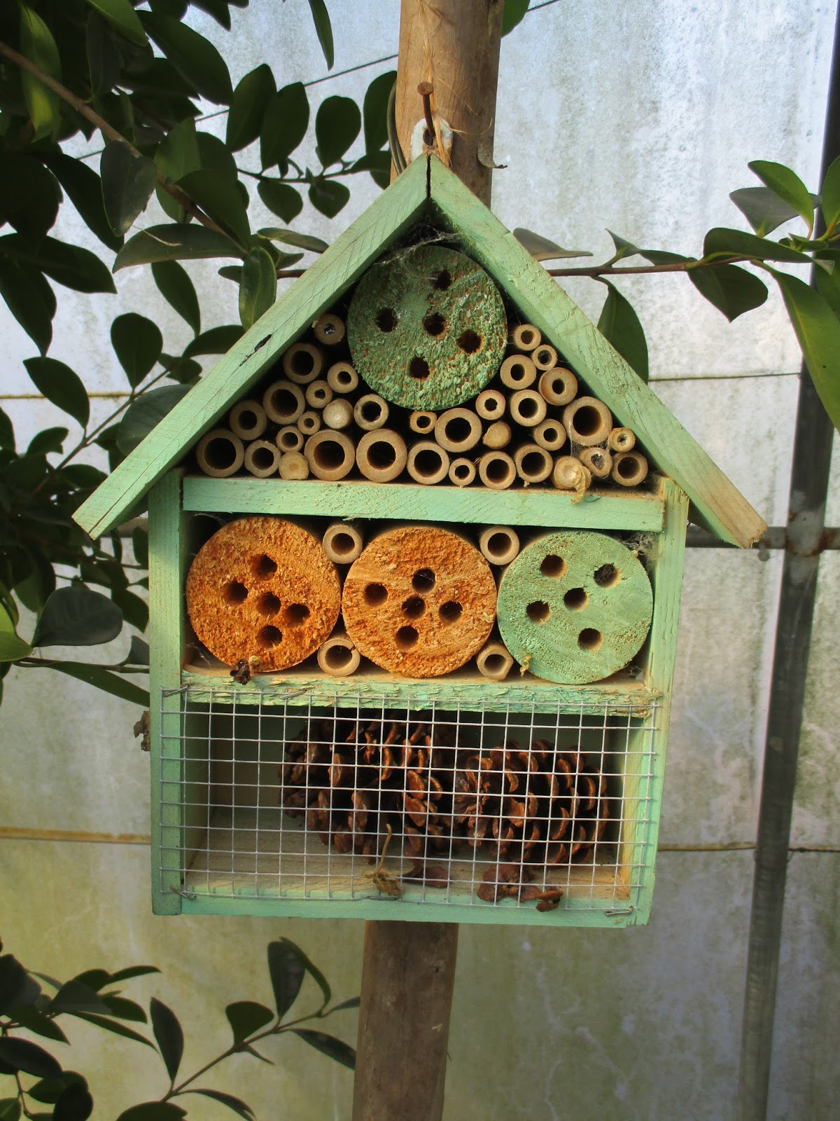 Pormenores do interior da estufa: casinha para insectos