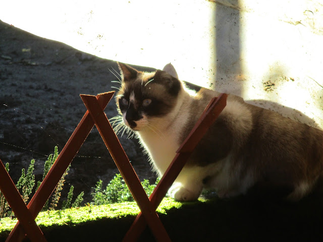 E na manhãzinha de domingo, toca alevantar para dar de comer à bicharada e ver como ficou o resguardo de plástico colocado no alpendre do galinheiro. Até a Tuca parece ter gostado, aproveitou logo para apanhar sol.