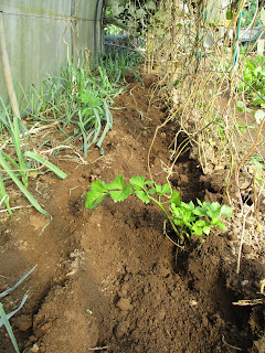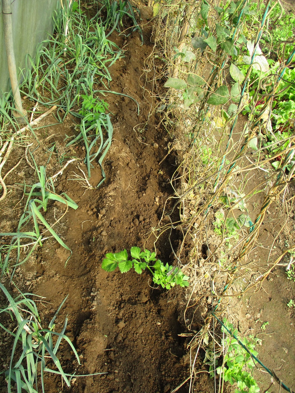Resolvi semear na estufa um reguinho de feijão e outro de pepino. Como lá dentro está mais quente uns 3 a 6 graus resolvi arriscar para ver se dá alguma coisa.