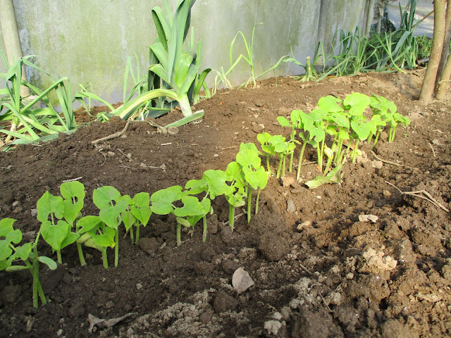 Pormenores do interior da estufa: feijão rajado
