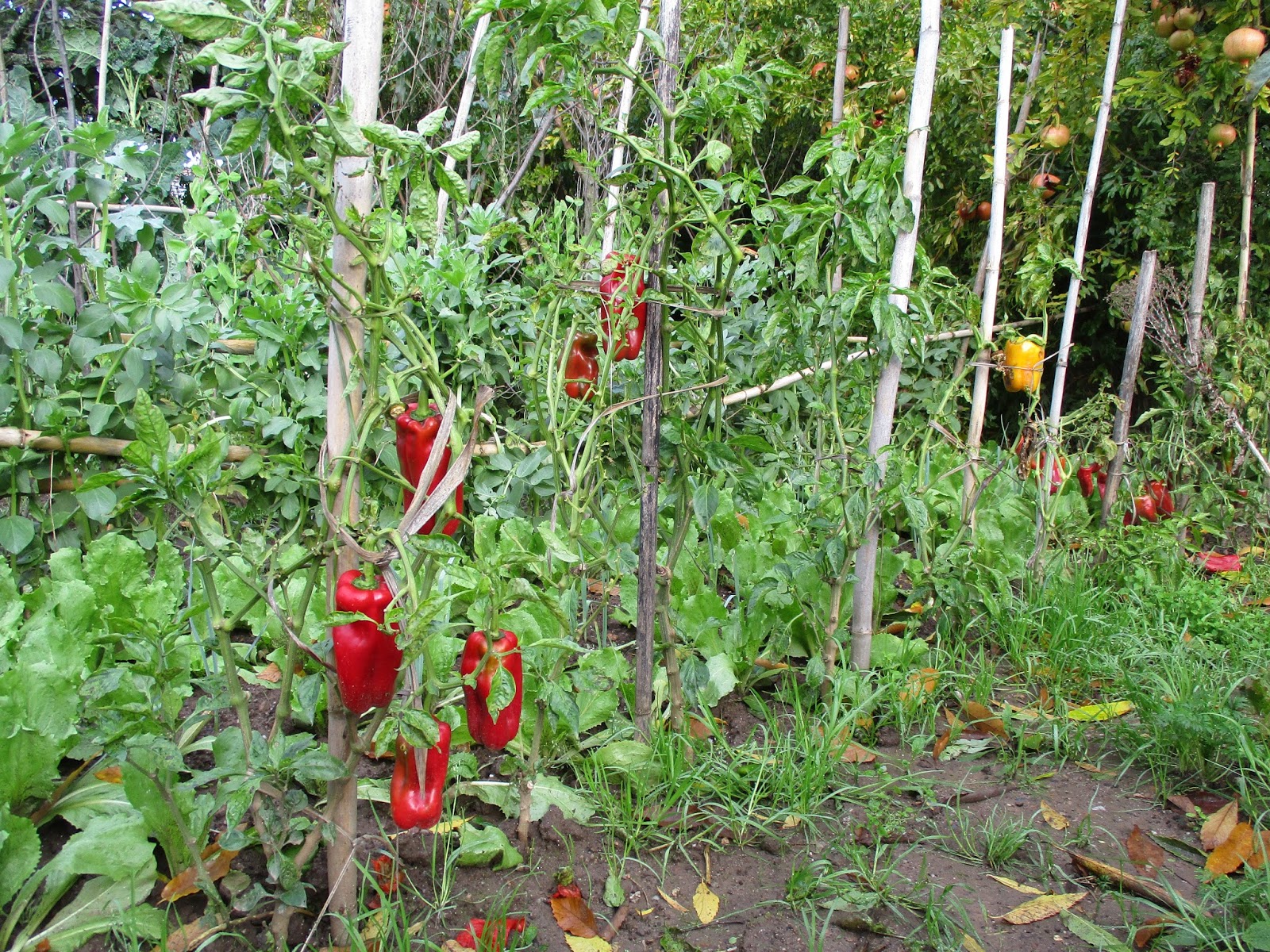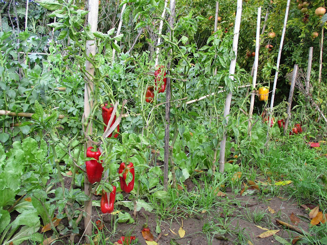 Mais um pormenor da horta da eira: pimentos que também vem do Verão mas que continuam a produzir. E fazem jeito, pois ainda há pouco tempo fiz uma caldeirada de peixe e necessitei de pimentos daqui. Brevemente vou ver se colho os vermelhos para congelar.