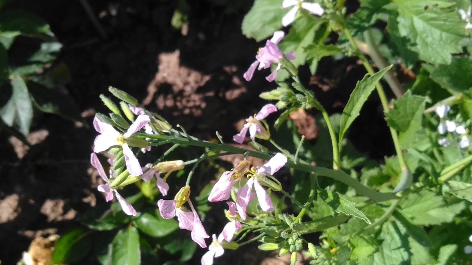 Alguns pés de rabanete que deixei para semente, estão em inicio de floração, agora é esperar que surjam as vagens com as sementinhas lá dentro.