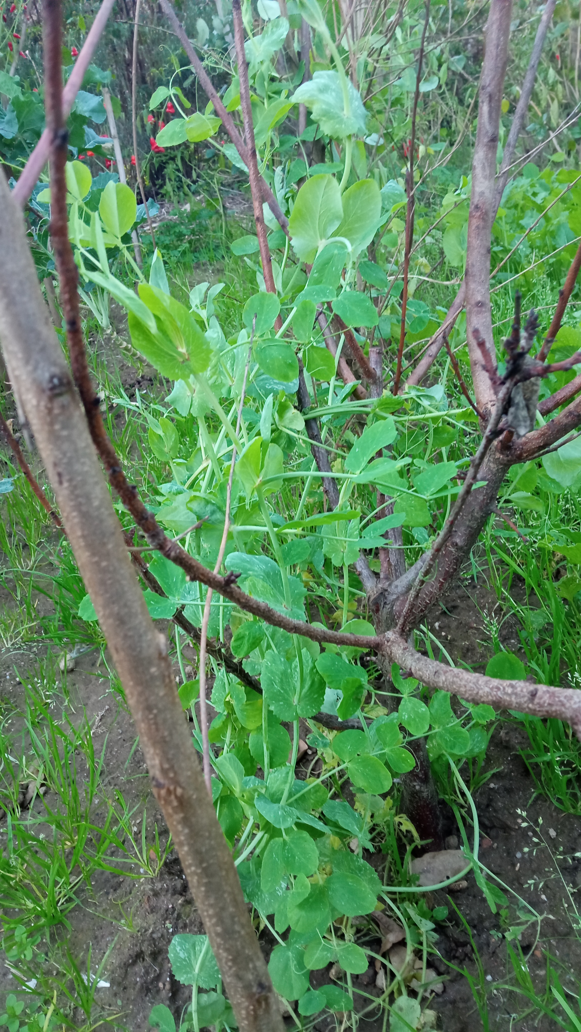 Uma volta pela horta. Está tudo a necessitar de sacha, mas não faço ideia para quando. Tem ervas por todo o lado. O ideal era fazer cova e roçar lá para dentro as ervas. Mas disponibilidade para o fazer é que é complicado. É um tarefa que leva tempo a executar . Entre as linhas das ervilhas e das favas dá vem para ver a abundância das ervas espontâneas.