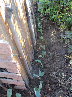 No sábado passado plantei estes 2 regos de couve galega e no domingo resolvi plantar um alho francês entre cada pé. Precisava de mondar o alfobre dos alhos e como de momento não tinha mais terra cavada resolvi planta-los aqui. Dizem que afasta os piolhos das couves e que limpa a terra de nemátodos.