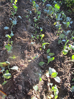Esta torna de couve galega foi a que plantei à menos tempo. Ainda estão pequenas, a ver-se muitos espaços de terra, as folhas ainda não cresceram o suficiente para impedir a chegada da luz ao solo. Isso faz com que as ervas espontâneas germinem e entrem em competição com as couves por espaço, luz e nutrientes. Por isso estavam a necessitar de sacha, esgravatar a terra para desenraizar as ervas daninhas para que sequem e e ao mesmo tempo oxigenar o solo revirando a terra.