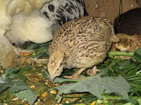 Hoje foi dia de apreciar a companhia dos animais. Mais um trio, desta vez de codornizes. Vivem juntamente com a porquinha-da-india e à noite junta-se também o casalinho de bramas. Pois estes insistem que é ali que querem dormir e ficam à porta à espera que alguém a abra para poderem entrar.