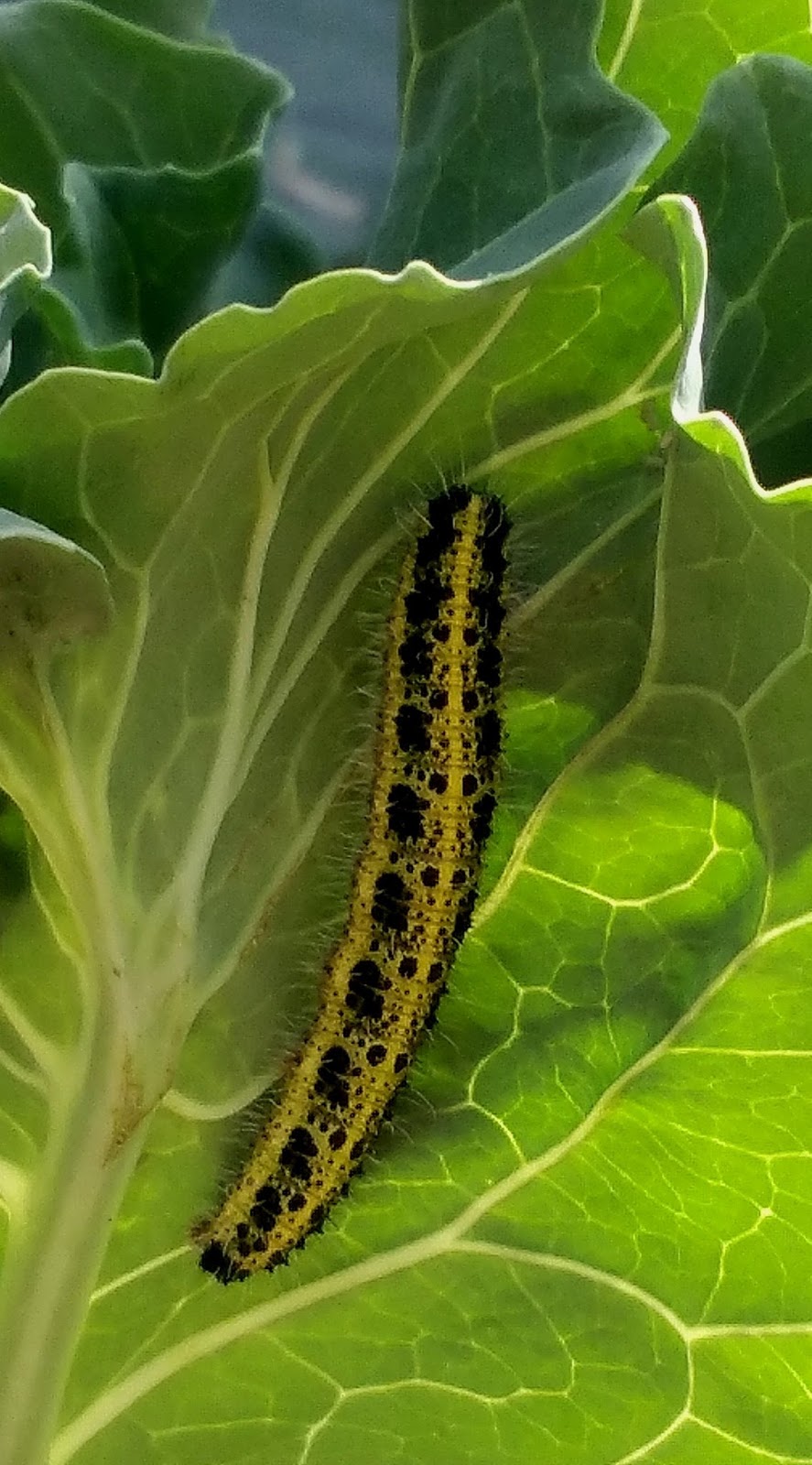 Ontem quando fui à horta colher folhas de couves para as galinhas, deparei-me com este cenário. As folhas de couves estão a ser atacadas por uma praga, as lagartas das couves. Tem couves que tem uma autentica colónia de indivíduos que devoram incessantemente as folhas. Deste modo se nada fizer não vai sobrar parte verde. Por agora vou apanha-las à mão, numa mão calço luva de latex e na outra seguro um baldinho e lá vou eu pela horta fora de couve em couve virando e revirando as folhas para encontrar estes parasitas. E vamos ver se resulta, vou ter que fazê-lo durante alguns dias para apanhar o maior número possível, pois não quero partir para outros tipos de ataque. Embora a parte da horta que tem nabal e couves ainda pequeninas, plantadas à pouco, vou polvilhar com cinza. As couves altas não adianta porque a cinza não se fixa às folhas.Vamos lá ver como vai correr.